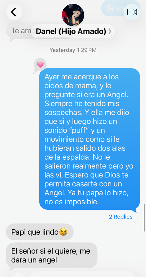 Me hubiera gustado que toda la iglesia pudiera ver lo que está ocurriendo en medio de ellos pero lo que tengo es esta foto. El asunto es que yo llegue inspirado a casa y ¡me paso algo con Cristina que jamás olvidaré!, fue tan especial que quise compartirlo con mi hijo Danel en un mensaje de texto;