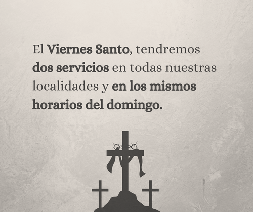 Esta es una gran oportunidad para invitar a alguien que aún no conoce a Jesús. Hay personas que nunca dirían que sí a visitar la iglesia un domingo normal… pero sí pudieran decir que sí un Viernes Santo.