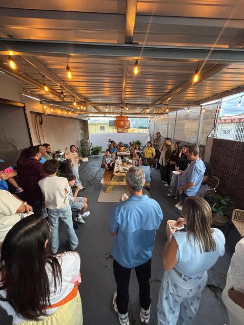 Esa misma tarde, personas de nuestra iglesia instalaron en casa de Millie y Melvin quienes ofrecen La Mesa de Conexíon, mesas de picnic, plantas, lamparas y remodelaron la terraza donde comparten mesa como familia. Y todo esto, después de que meses atrás, un discípulo ya le habían regalado el techo.